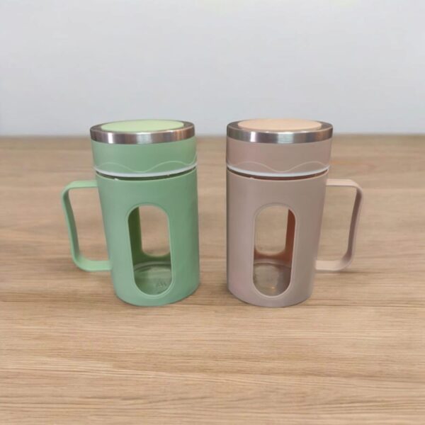Elevate your tea-drinking experience with this sophisticated glass mug featuring a modern, minimalist design. The elegant beige exterior houses a practical clear window that lets you monitor your beverage level at a glance. Crafted with attention to detail, this mug comes with a premium stainless steel lid that helps maintain your drink’s temperature while preventing spills. The ergonomic handle ensures a comfortable grip, making it perfect for both hot and cold beverages. The thoughtful design combines functionality with style, making it an ideal companion for your morning tea ritual or afternoon refreshments. The durable construction ensures longevity, while the sleek aesthetic complements any kitchen or office setting. Whether you’re a tea connoisseur or simply appreciate well-designed drinkware, this mug offers both practicality and visual appeal for your daily beverage needs.