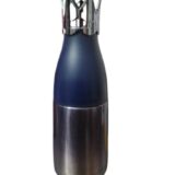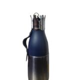 Stay royally hydrated with this striking double-walled stainless steel water bottle featuring a unique crown-shaped cap design. The navy blue exterior offers a sophisticated look whilst the double-wall insulation keeps your beverages at optimal temperature for hours. The practical carrying strap makes it perfect for on-the-go hydration during workouts, office hours, or outdoor adventures. The robust stainless steel construction ensures durability and prevents condensation on the exterior, keeping your hands dry and your bag contents protected. This stylish thermos combines functionality with elegant aesthetics, making it an ideal companion for those who appreciate both form and function in their daily hydration needs. The secure crown cap not only adds a distinctive touch but also ensures a leak-proof seal to prevent any unwanted spills.
